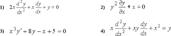 Какие из приведенных дифференциальных уравнений являются линейными?