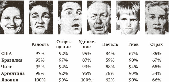 Научные психологические исследования подтверждают межъязыковую универсальность невербальной коммуникации. Исследователи показывали фотографии людей с выражением эмоций: радости, отвращения, удивления, печали, гнева и страха представителям разных языковых культур и просили их определить характер выражаемых эмоций. В результате были получены высокие проценты адекватного восприятия данных эмоций, несмотря на значительные различия между языковыми культурами опрошенных (Блум и др., 1988).