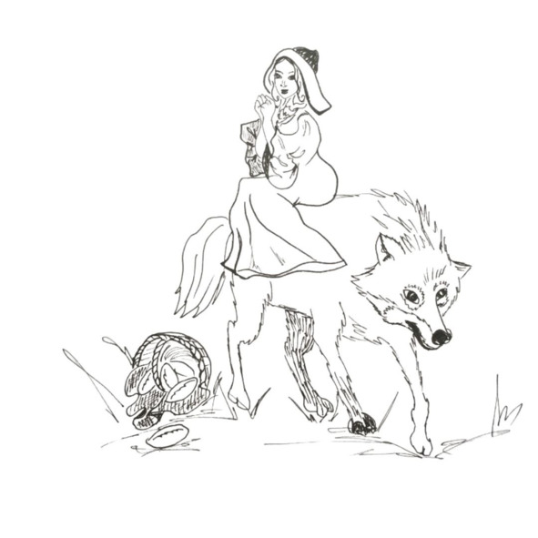 Как вдруг откуда ни возьмись появился её давний знакомый. Сегодня волк уже не выглядел таким безобидным. Шерсть его вздыбилась. Он медленно шёл на дровосека, рычал и скалился. Пьяница завизжал, как поросёнок, и пустился наутёк.