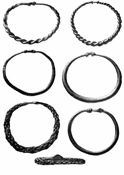 Шесть золотых браслетов из клада, найденного в 1913 г. в усадьбе И.А. Сикорского. Датируются IX–X вв.