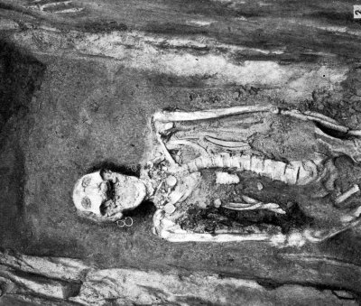 Общий вид погребения рядового горожанина IX–X вв. Обнаружено в усадьбе Десятинной церкви в 1913 г. Киев