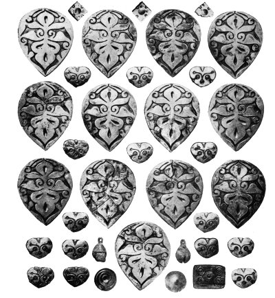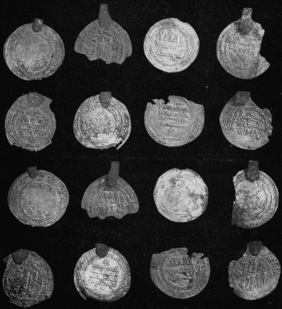 Подвески-диргемы, обнаруженные в погребении IX–X вв. знатного дружинника с женщиной. Раскопки 1936 г. в усадьбе Художественной школы. Киев