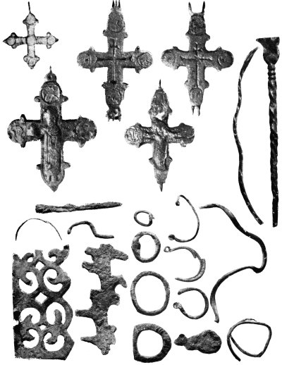 Бронзовые изделия и отходы производства, найденные в мастерской литейщика. Раскопки 1948 г. в Киеве