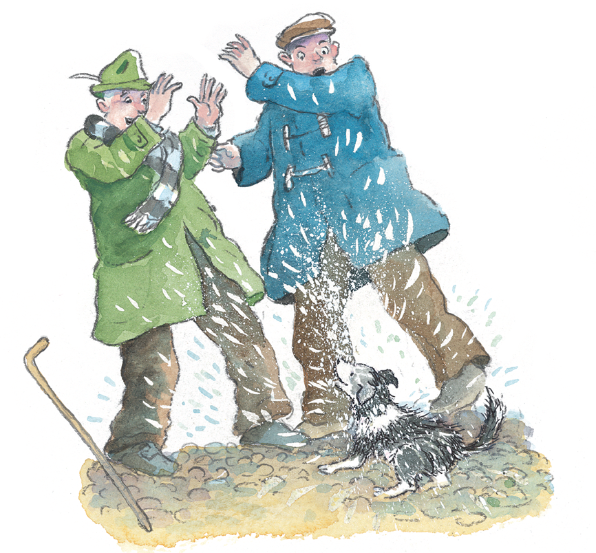 The men looked a little older than Dad. City people, I thought – they had on muddied city shoes, not wellies. Alex nodded and put his finger in his mouth, which he always did when he was nervous.