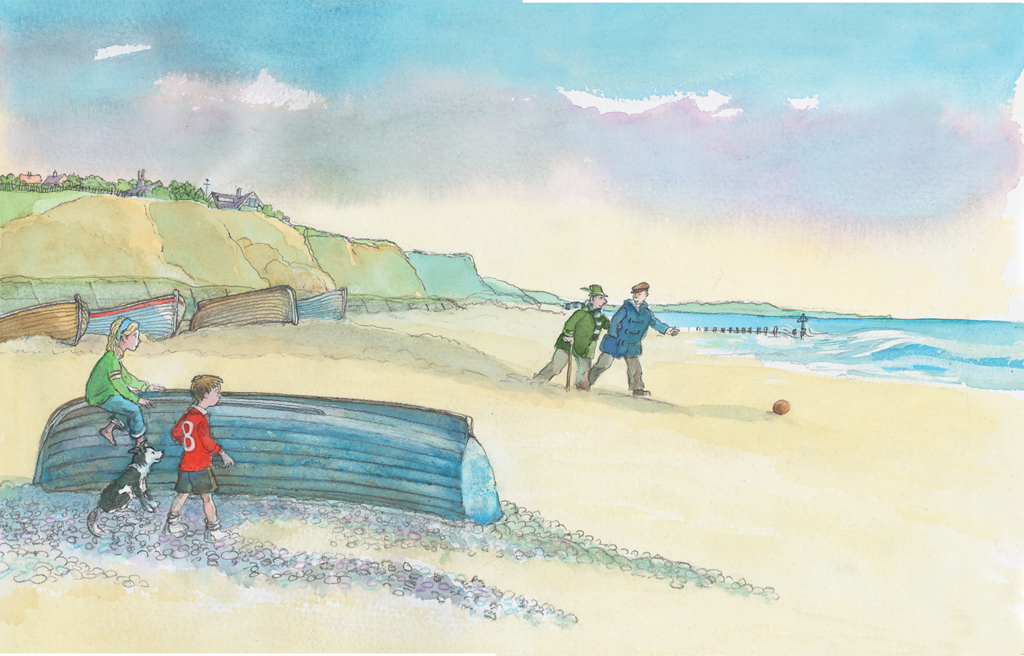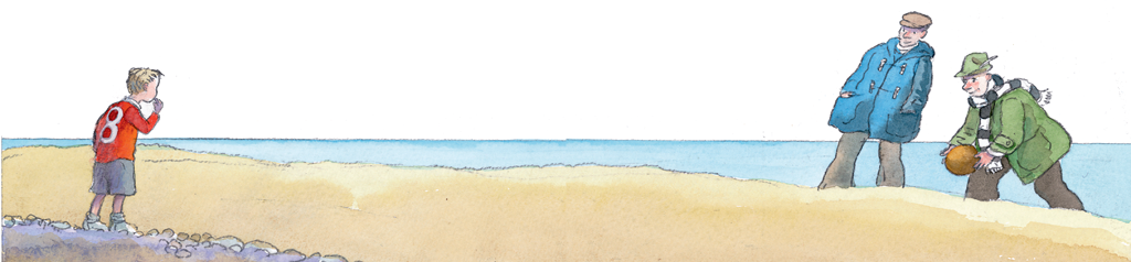 He dropped the ball on to the ground, took a step or two back and kicked it. It was a perfectly judged kick, the ball ending up so close to us that Alex had only to bend down to pick it up. The two men laughed, waved at us, and went on their way, down towards the sea, where they stood for a few moments with their backs to us, looking up and down the beach. That was when I heard one of them saying, “It was about here. I think it was about here that it happened. Ja, Ja. Here. I am sure.”