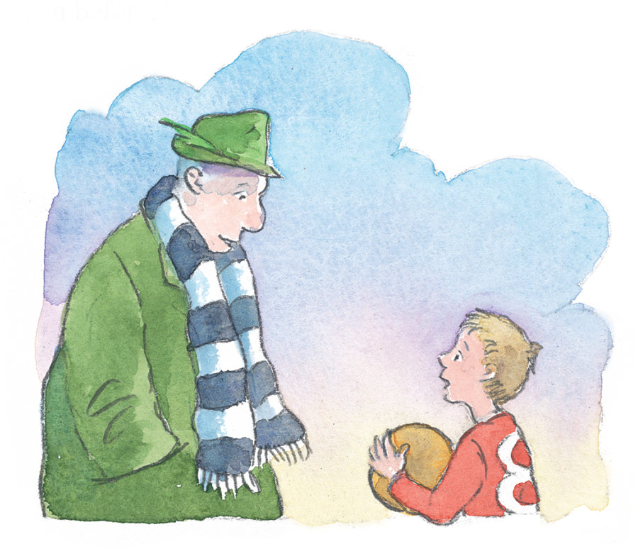 Then the one in the hat took the football off him. “Nein, Nein, Marty, I shall kick it,” he said. “A football should be kicked. It is what a football is for.”