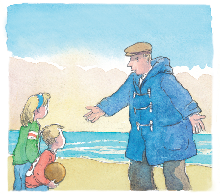 I couldn’t believe it. The man seemed to know so much about us – our home, even our mum’s name – and I hadn’t told him anything. As he turned away from us I could see he was near to tears. He walked away on his own up to the top of the beach, where he sat down by the upturned rowing boat.