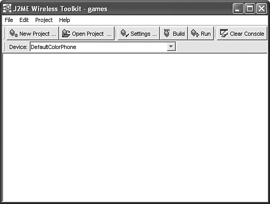 Рис. 2.1. KToolbar предоставляет минимальные средства для разработки игр на J2ME