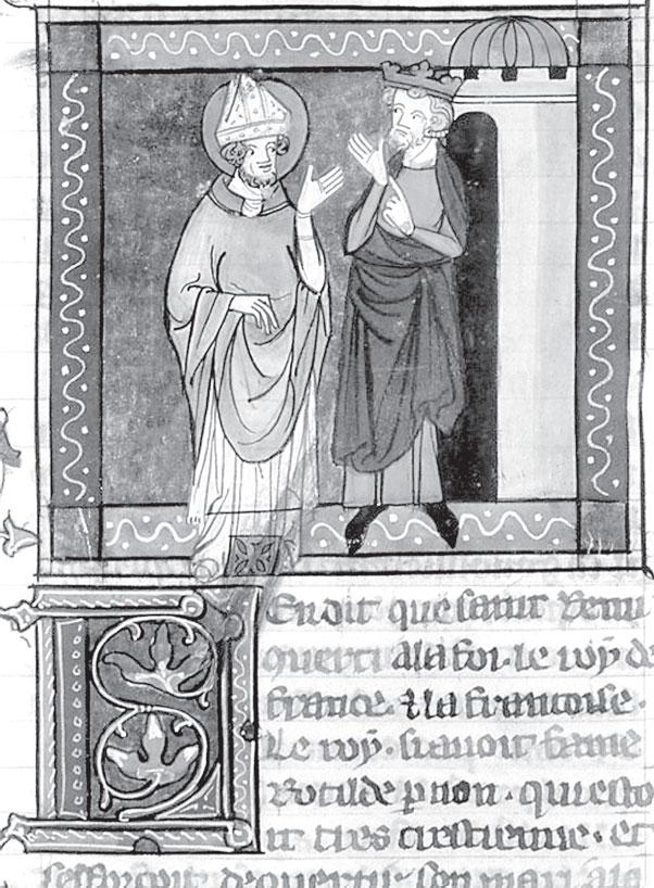 Король Хлодвиг и св. Ремигий. Французская миниатюра. XIV в.