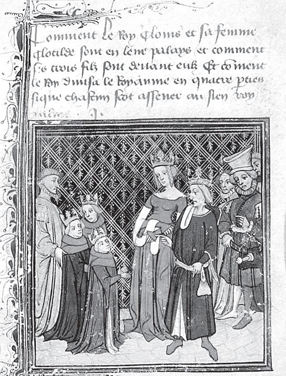 Король Хлодвиг и его семья. Миниатюра Хроники Сен-Дени. XIV в.