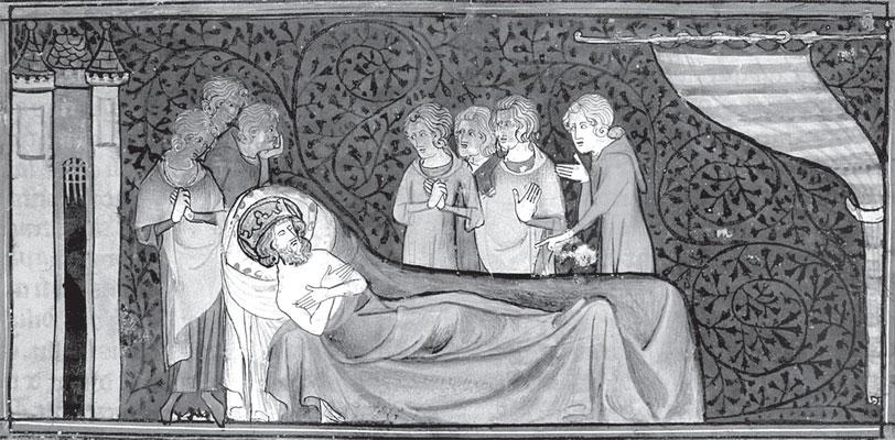 Смерть Людовика Святого во время Крестового похода в 1270 г. Миниатюра Хроники Сен-Дени. XIV в.