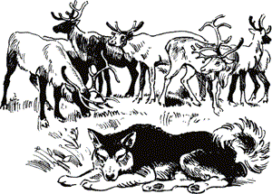 Наконец он устаёт от своих раздумий, медленно опускает на лапы голову и грустно смотрит на тундру, где когда-то родился, беспомощный и слепой, где вперевалку, неуклюже ходил на кривых лапах. Потом у него прорезались глаза, и он играл на травке у чума с другими щенками, кусался, повизгивал, боролся, прыгал. Когда чуть подрос и окреп, его стали пускать в стадо, но он был глуп и непонятлив. Почуяв простор, носился он по тундре, гонял и хватал зубами задние ноги быков и ликовал от одного чувства, что олень, такой большой и сильный, закинув на спину рога, удирает от него, крошечного и безрогого.