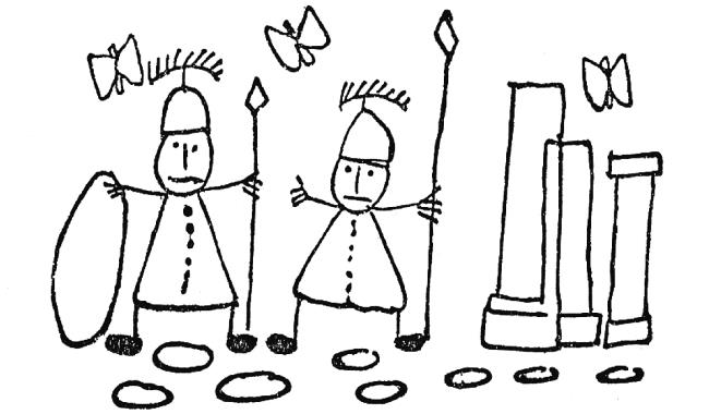 Тронов он, конечно же, тоже никогда не видел, так что не мог знать, как они выглядят. Он знал, что существуют стулья, табуретки, скамейки, – жил он с мамой и маленькими братьями в довольно скромном домишке и даже не подозревал о существовании диванов и кресел. Куда ж ему посадить короля? На скамейку? Или на соломенный стульчик, такой, на котором он сидел сам, когда делал уроки или обедал? Это несерьезно. Нужно было что-то, о чем Мартинелли не знал, потому что никогда в жизни не видел. Поэтому из уважения к королю он поставил друг на друга много скамеечек, стульев и табуреток, а на вершину этой чудом держащейся башни посадил короля. Так что подданные оставались далеко-далеко внизу и казались совсем крошечными. И я не собирался объяснять Мартинелли, что его человечки непропорциональны: ведь, нарушив пропорции, он нашел самый точный способ подчеркнуть величие короля.