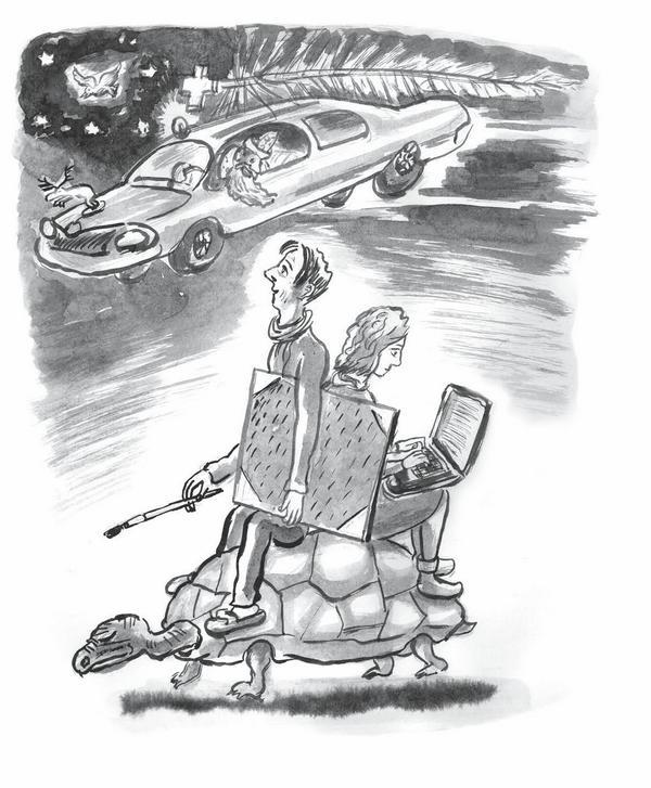 Ладно, мое дело маленькое. Его футуристические идеи я отливала в формы седых преданий, удерживая равновесие между выраженным и сокрытым, как будто это был вечный текст, до потопа надиктованный свыше и вписанный в скрижали. И диктовал его чуть ли не тот же голос, что и пророку Моисею на горе Синай.