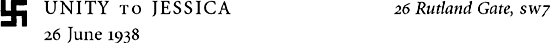 What I couldn’t tell you on the telephone was this. You remember my little friend from Vienna who you said was like an Indian, & his pretty blonde fiancée who asked the Führer for an autograph in the Osteria. Well yesterday she telephoned & said could she come & see me for five minutes, but her fiancé mustn’t know anything about it. So this morning she came, & she was here when you telephoned. You know Heinz, her fiancé, was a member of the SS in Vienna – I believe since 1932. He was a tremendously enthusiastic Nazi & really risked everything for the cause during the Schuschnigg Regime. Well it seems that just after the Machtübernahme2 his father, also a member of the Partei, who had brought him up to be very ‘national-denkend’ [nationalistically minded], told him that both his (Heinz’s) mother’s parents were Jewish. Of course poor Heinz was completely erledigt [shattered] when he heard it, & wanted to shoot himself at once, which it seems to me would have been the best way out. Though, officially, he doesn’t count as a Jew as both the grandparents were baptized. But for Heinz, being a real Nazi ‘aus Überzeugung’ [by conviction], that naturally made no difference. His father made him promise not to do anything until they had had a reply to their Ersuch [request] to the Führer, but so far there has been no reply, & in the meanwhile of course he is having what is practically a nervous breakdown. Well it seems that there are several half-Jews who have, at one time or another, been allowed to remain in the Party on account of special Verdienste [services]. So they hope that he also will, though of course this will anyhow, from his own point of view, have ruined his life. So she came to ask me if I would help her, & I told her that if she would write a personal letter to the Führer I would give it to him personally. Isn’t it awful for them, poor things. I must say it gave me an awful shock when she told me.