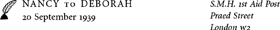 Susan the P’s. The day war broke out I was leaving the Island1 & Muv was taking me to the station & I said something only fairly rude about Hitler & she said ‘get out of this car & walk to the station then’, so after that I had to be honey about Adolf. Then later I said Peter had joined up so she said ‘I expect he’ll be shot soon’, which I thought fairly tactless of her.