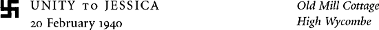The Romillys spent their first months in America scraping a living in various occupations; Jessica worked as a salesgirl in a dress shop before landing a job selling Scottish tweeds at the New York World’s Fair of 1939. A clutch of letters of introduction from family and friends helped the couple to make contacts, some of whom, such as Katherine Graham of the Washington Post, were to become lifelong friends. They went to Washington, where Esmond worked as a door-to-door silk-stocking salesman, and then on to Miami, where Jessica found a job selling costume jewellery and Esmond became part owner of a bar with a $1,000 loan from Katherine Graham’s father, the wealthy financier Eugene Meyer. When Chamberlain resigned and Churchill formed a National Government, Esmond decided to join the war effort and signed up with the Canadian Royal Air Force, applying for a commission as a pilot officer. In June 1941, four months after their daughter Constancia was born, Esmond was posted to Britain as an air force navigator. Six months later, a few days before Jessica was planning to join him in England, Esmond was declared missing after his aircraft went down over the North Sea. Winston Churchill, who was on a visit to America to meet Roosevelt, saw Jessica and gave her details of Esmond’s disappearance. He made it clear that there was not the slightest chance that Esmond was being held prisoner of war but Jessica continued to hold out hopes of his survival and it was months before she could accept that he was dead. There are no letters to her sisters to tell of her devastating loss, and in Hons and Rebels his death is recorded in a mere footnote. Jessica buried her grief as her upbringing had taught her and refused to give in to misery or despair. She turned her anger on Diana and her ‘precious friends’. Where previously she had felt revulsion for her sister’s politics, her hatred was now personal. Unity escaped any share of the blame, perhaps because her pitiful state made her impossible to hate.