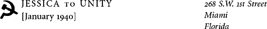 Esmond & I have got jobs in a Miami bar, you must admit rather ‘fascinating’. The other people there are heaven (mostly Italian & Spanish) & we have all our food there which is wonderful, because it’s the most delicious food I’ve e’er noted. We’ve got to know the most amazing people here; for instance, I have one friend whose only interest in life is birth control, & when I go to tea with her she takes me round in her car for free handouts of contraception to nigger families. Miami’s rather like the South of France or Venice, all the people here have got something extraorder about them. Well Boud I’ll write again soon, & do get well quickly.