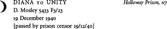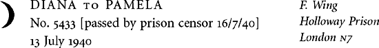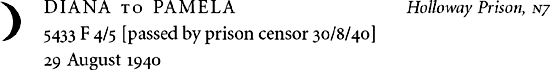 How are you darling; I always get your messages from Muv, how I wish I could see you. Perhaps before very long I shall be let free, wouldn’t that be Paradise. If not quite free, what we want more than anything is for Kit and me to be imprisoned together. Please get anyone who sees MPs and so on to press for this. It has never even been suggested that any charge could be brought against either of us or that we have ever done anything illegal.