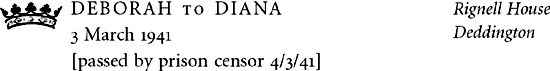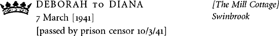 Birdie hates me so dreadfully, I really can’t think why, it makes it almost impossible to go to Swinbrook. You can’t think how awful it is to see her now because although one is quite used to it because she’s been like that for nearly two years now it’s simply awful when one suddenly remembers what she used to be like. I don’t believe she will ever get quite normal again, it really is a nightmare when one thinks of her future. She has got a terrific religious thing on now and if you say even ‘damn’ she gets quite furious and says it [is] wicked to swear.