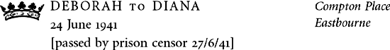 The trouble about married life is never seeing one’s husband. He is going on a course for all July to Netheravon. How I wish you were still at Biddesden. I’ve written to Woman to ask if she thinks one could possibly ask oneself there for a weekend or two because she used to go when Derek was near them. Otherwise I shan’t see him for weeks and weeks and it was such a waste having the Regent’s Park house done up because so far I’ve spent exactly one night in it! Eddie Marsh3 lives here now, he is such a silly old man and eats a terrible lot. His best friend is Ivor Novello4 who is acting in Brighton and has just been over here for the day. The children5 got giggles at lunch when he said something was ‘divine’ for the 10th time, it was awful. I’m going to Swinbrook for July, I do hope Bird won’t kill me, she does hate me so!