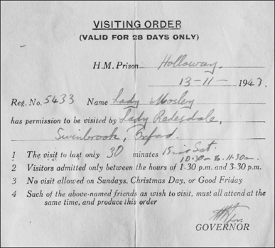 Lady Redesdale’s permit to visit Diana in Holloway.
