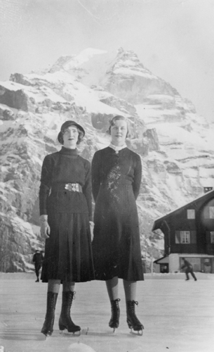 Diana (right) with her childhood friend Cecilia Keppel in Mürren, Switzerland, 1933.