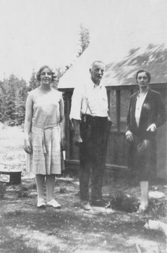 Pamela with Lord and Lady Redesdale at ‘the shack’, prospecting for gold in Swastika, Ontario. 1929.