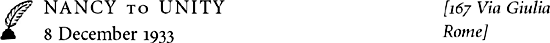 You must come to Swinbrook when I get back, as you will be wanting to see my 304 postcards of the Führer I’m sure. Poor sweet Führer, he’s having such a dreadful time. Well now I must go. But I must tell you one thing first. You see there is a monument in the town to the Nazis who were shot down in 1923, & everyone must salute while they pass it. I took the old Fem5 past it once & she wouldn’t salute, & the next time we passed it she went round a different way alone. So to pay her out, Decca & Ann & I dashed for a tram, & went home, & left her in the town quite lost & not being able to speak a word of German & that was in the morning, & poor old girl she didn’t find the way back until dinner time! Wasn’t it a good pay-out.