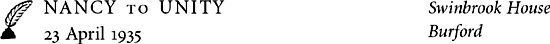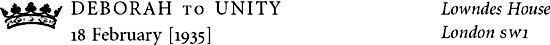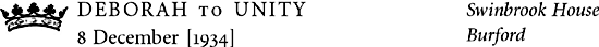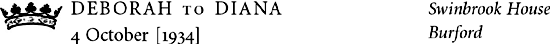 Thank you ever so for your letter. How lovely, are you really going to give a party when I get back? I hope it will be as lovely as the one before I went. I actually return next Thursday the 19th, but have to go straight to Swinbrook, and please give me time to have my one-&-only evening dress altered by Gladys1 so it fits me, otherwise I couldn’t possibly come. So could it be about 1½ weeks after my return?
