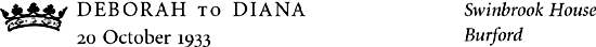 For Deborah, alone among the sisters, the sale of Swinbrook in 1936 was a lasting sorrow and spelt an end to what she regarded as an idyllic childhood. Lord Redesdale’s fortunes had not recovered from the Depression and he could no longer meet the cost of maintaining a large house and estate. Although Lady Redesdale had grown fond of the village and enjoyed living in the country, she went along with her husband’s decision. They moved to the Old Mill Cottage on the outskirts of High Wycombe, some thirty miles from London, taking with them Jessica and Deborah, the only two sisters still at home. The picture in the public mind of the Mitfords’ childhood is largely formed by Jessica’s first volume of memoirs, Hons and Rebels, and by Nancy’s novels. Both Jessica and Nancy remembered their childhood essentially as a period of unhappiness and discontent, and their parents as cold and unloving. Deborah had a much easier time than her older sisters; she found Lady Redesdale no stricter than other mothers and was fond of her father. The shock waves sent out by the escapades of her older siblings reached her as distant disturbances and were not sufficient to undermine the security of her well-ordered life, in which lessons with a succession of governesses alternated with long hours in the stable and on the hunting field. There was also a single term at The Monkey Club, a London finishing school from which Lady Redesdale quickly removed her when Deborah told her that it was full of communists. Jessica’s elopement, however, came as a complete surprise and, following closely after the sale of Swinbrook, shook her profoundly. It was a betrayal of the complicity she thought she shared with her beloved childhood companion and it brought an end to their intimacy. Jessica, who envied Deborah’s beauty and her position as their parents’ favourite, never realized how much she had meant to her youngest sister or understood how deeply her disappearance had upset her. To add to Deborah’s distress, the Redesdales forbade her to go to Jessica’s wedding and would not allow her to visit the Romillys when they returned to England. Although Deborah managed to see her sister a few times in secret, the visits were not a success. She did not get on with Esmond, did not like his communist friends, and found being in their company a ‘lowering experience’.