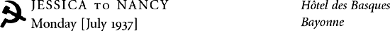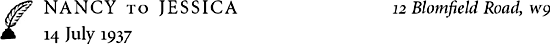 Have you been to any more dances? I gather from your letters that you more or less loathe most of them, I must say deb dances aren’t the cheeriest form of entertainment. But it seems all the more marvellous when one doesn’t have to go any more; Esmond says that’s the same as being at a public school or remand home, that always afterwards you think how lucky you are not to be there still. Anyway I expect next year it really will be more fun; I call the middle of July an extraorder time to come out, you might have liked it more if you had come out at the beginning of the summer.