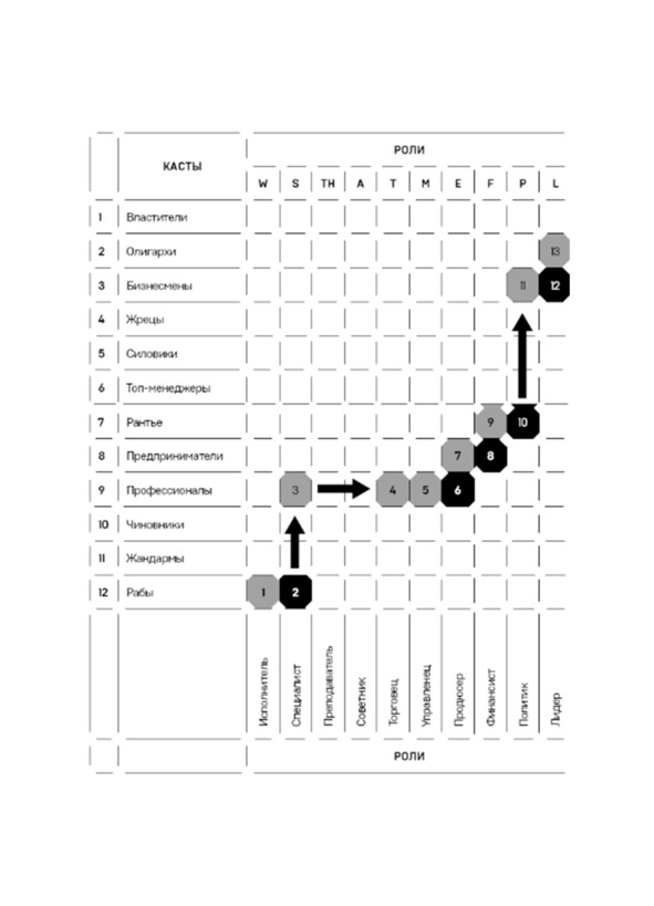 6. Стрелками по квадратам пересечения ролей и каст проложить ваш маршрут до целей (все варианты маршрутов)