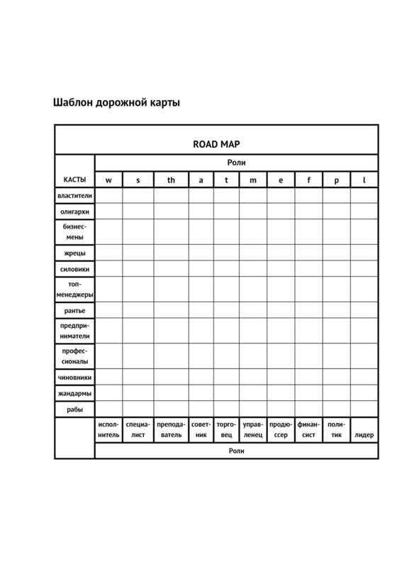 5. Вписать цели в квадраты пересечения ролей и каст, которым эти цели соответствуют.
