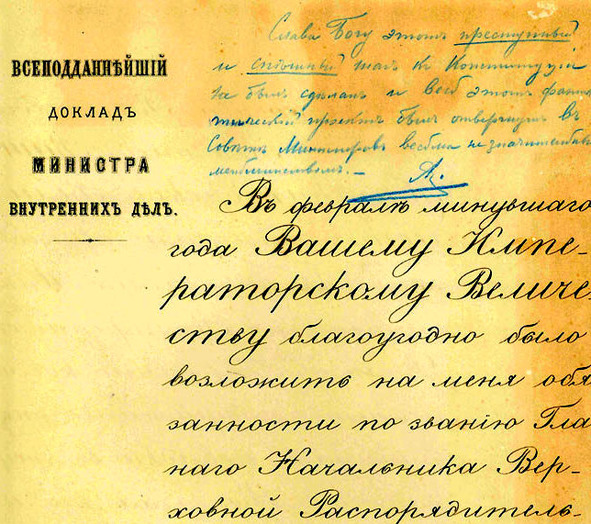 В конце царствования Александра II был составлен проект создания верховного совета при царе, включавшего крупных вельмож и чиновников, которому передавалась часть прав и полномочий самого царя. Авторами данного «конституционного проекта» был министр внутренних дел Лорис-Меликов, который получил в конце царствования Александра II чрезвычайные полномочия, а также министр финансов Абаза и военный министр Дмитрий Милютин.
