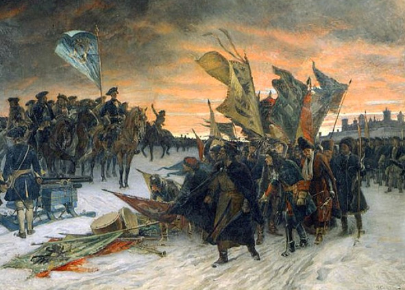 В этих непростых условиях Пётр Первый 14 июля 1700 года сумел заключить Константинопольский мирный договор с Турцией, который явился итогом его Азовских походов. После чего, направил свои войска к шведской крепости Нарве.