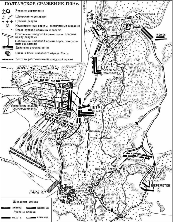 Острый недостаток продовольствия и фуража заставил Карла XII весной 1709 года двинуться в неразорённую войной – Полтавщину. В апреле шведская армия сосредоточилась в районе Полтавы. Попытки взять город были отражены героическим сопротивлением гарнизона крепости, численностью около 4 тысяч человек при 29 орудий под командованием коменданта – полковника А. С. Келина. С апреля по июнь 1709 года шведы предприняли 20 штурмов Полтавы и потеряли под её стенами около 6 тысяч человек.