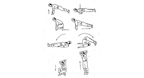 – Силовая тренировка без каких- либо приспособлений. Один лучших вариантов это повторение ранее упомянутого «Цикла Купера», состоящего из 4х повторяющихся упражнений. В отличие от теста на