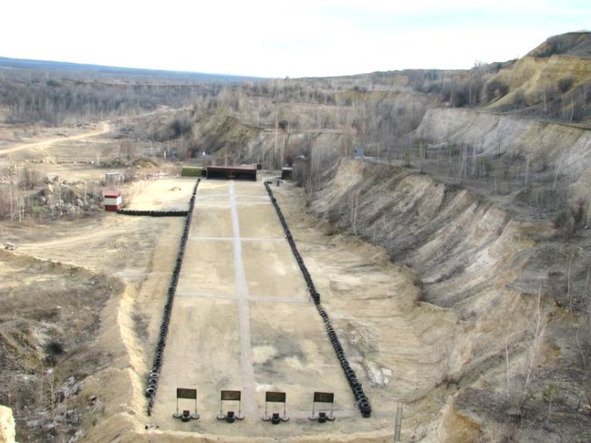 Ещё одним важным элементом учебного лагеря является стрельбище, обеспечивающее возможность стрельбы из ручного стрелкового оружия на дальности 50—500 метров, с места и в движении. Идеальным можно считать размещение стрельбища у подножия горы, либо в карьере, когда за дальней линией мишеней находится гора, либо высокий земляной вал, исключающий неконтролируемый разлёт пуль (фото 12).