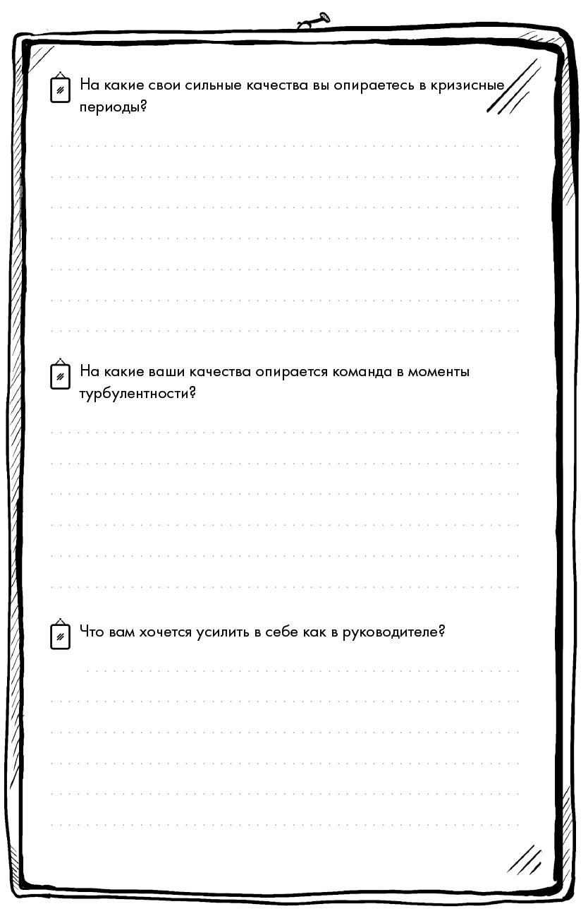 Лидер – фигура силы, которой важно сознавать, куда направлен внутренний поток энергии. Если что-то постоянно крутится в голове, если внутренне мы с кем-то спорим, ссоримся, кого-то обыгрываем или побеждаем, мы теряем силу. Внутренние игры с нафантазированными призраками и придумывание ребусов могут отбирать огромное количество жизненной энергии лично у нас и у нашего будущего бизнес-результата. Если такие внутренние диалоги возникают, они требуют незамедлительных решений, закрытия гештальтов[1] и переключения внимания с того, что забирает силу, на то, что ее дает, – туда, где у нас наибольший потенциал.