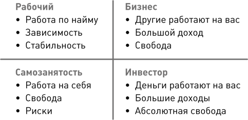 Квадрант денежного потока состоит из четырех возможностей, в которых может существовать человек с точки зрения генерации своих денежных потоков.