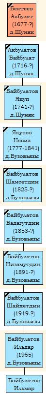 3/2. Байбулат Акбулатов (1716-?). Проживал в д.Шуняк. В 1760-е гг. переселился в Бузовьязы.