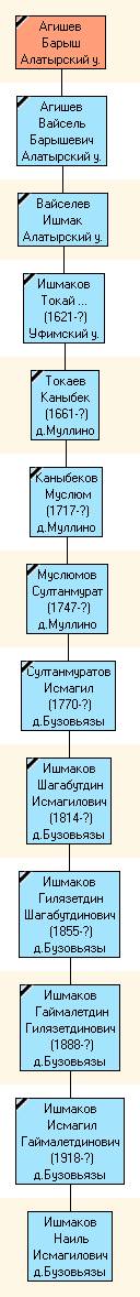40/16. Габдуллатиф Ишмухаметов сын Ишмаков (1787-?). Жены:1-я Гульзямин (1789-?); 2-я Хуснизиган Абдулзелилева (1826-?).