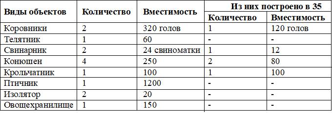 План кормодобывания 35 года выполнен полностью скошено сена на площади 135 1а и собрано валовый сбор сена 3327 ц., что дает среднюю урожайность с Га 24 ц.