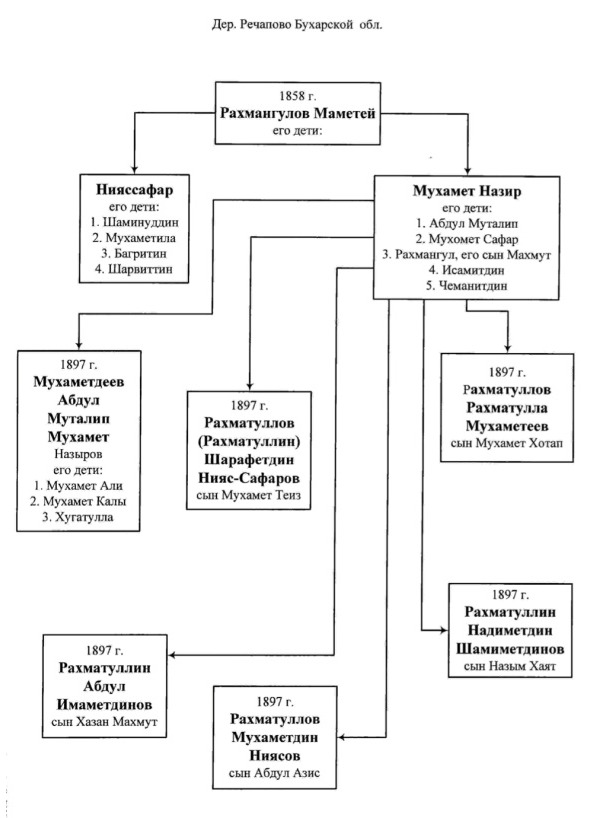 Ниже приведены родословные нескольких фамилий из бухарцев деревни Речапово в XVIII веке4.