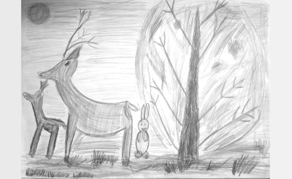 Алёша услышал треск веток, потом всё затихло. Мальчик осторожно открыл глаза. Волков не было. Рядом стоял Лось.