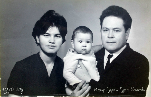 На пятом курсе 7 сентября 1969 года в 7 часов утра, как раз, в день нефтяника, родилась наша доченька. Мы назвали её Гузель – красавица. Первая открытка и бирочка о её рождении с ростом и весом хранится у меня. Забот нам с Зугрой, конечно, прибавилось. Учиться стало ещё труднее, но мы старались от других не отставать. На лекции ходили по очереди, помогали друг другу. Вместе стирали, гладили, готовили еду, купали и нянчили новорожденную дочку. На нашу радость, она была очень спокойной. Наши однокурсники любили играть с ней, носили её из комнаты в комнату и развлекали, в это время мы занимались уроками. Как-то друзья отправили нас с Зугрой отдохнуть в кино, а сами нянчились. Так, наша Гузель росла и училась вместе с нами.