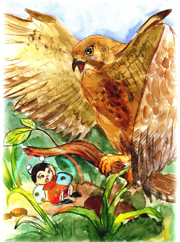 Рядом, сотрясая могучую крону раскидистого вяза и сломав несколько веток, приземлилась, распахнув полуметровые крылья, огромная Пустельга. Покосившись тёмно-коричневым глазом в жёлто-зелёном кружочке на сжавшуюся от волнения букашку и щёлкнув от нетерпения изогнутым клювом, хищница недружелюбно проклекотала: