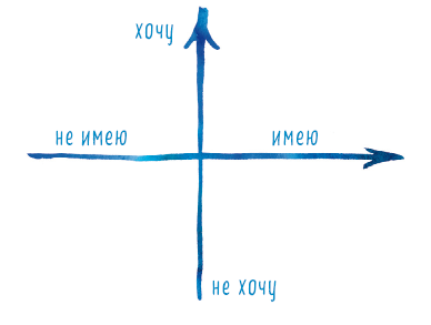 Проведем две оси – хочу/не хочу, имею/не имею.