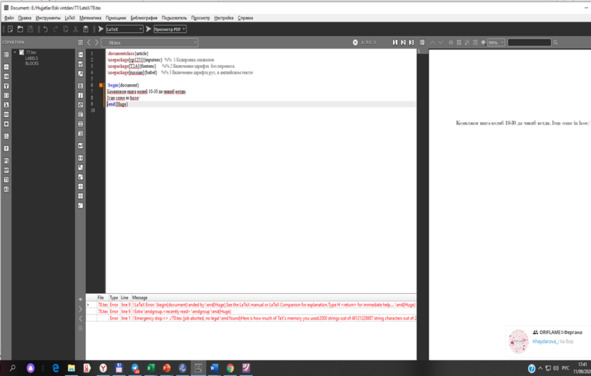2. Kiritilgan matindagi \begin {document} buyrugida “\” simvolini tushirib qoldirib kompanovka jarayonini kuzting. Kuzatilgan xatolikni tahlil eting.